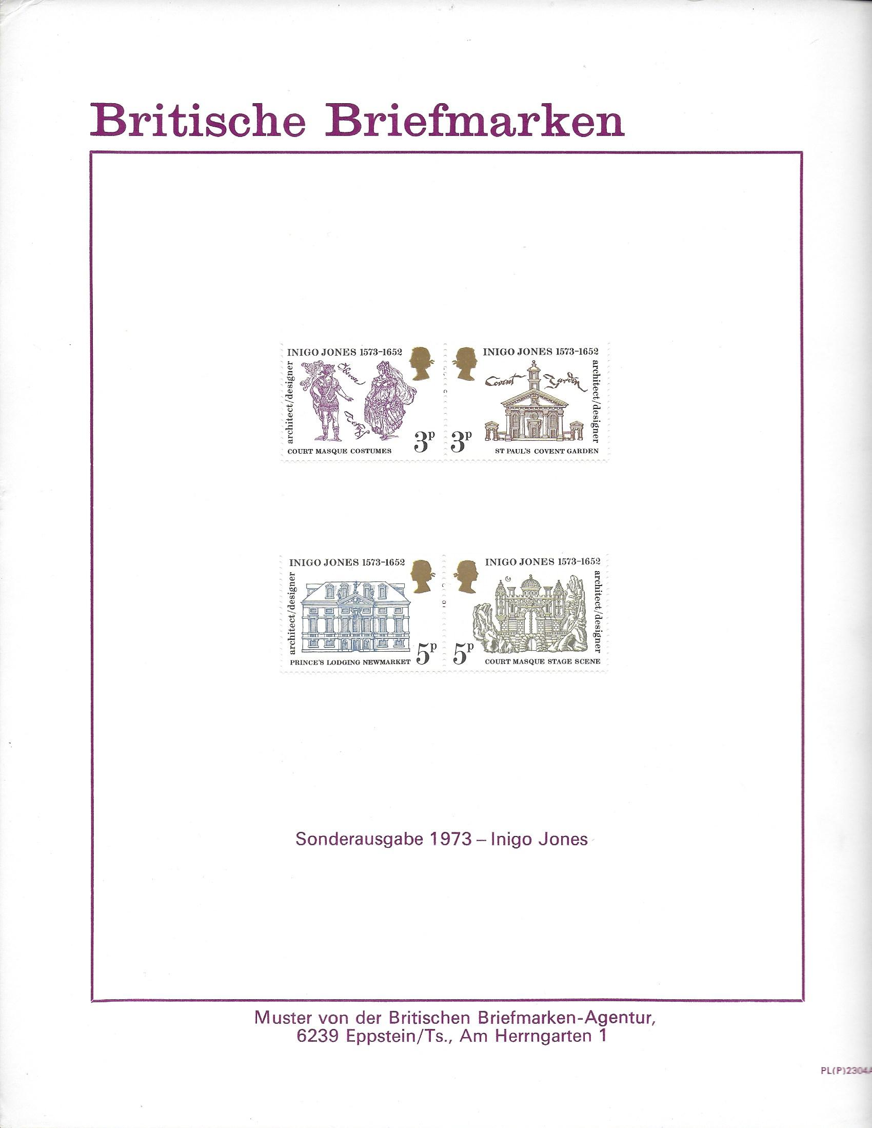 1973 Inigo Jones. Set on GPO German Publicity Card.