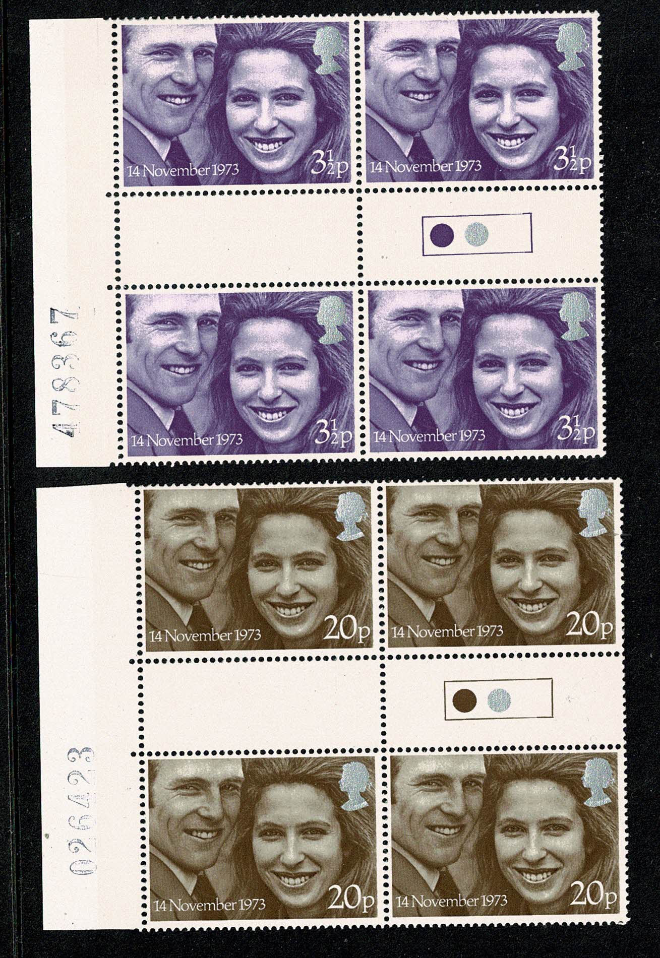 1973 Royal Wedding set of 2 values Traffic Light Gutter blocks of four. SG 941-942