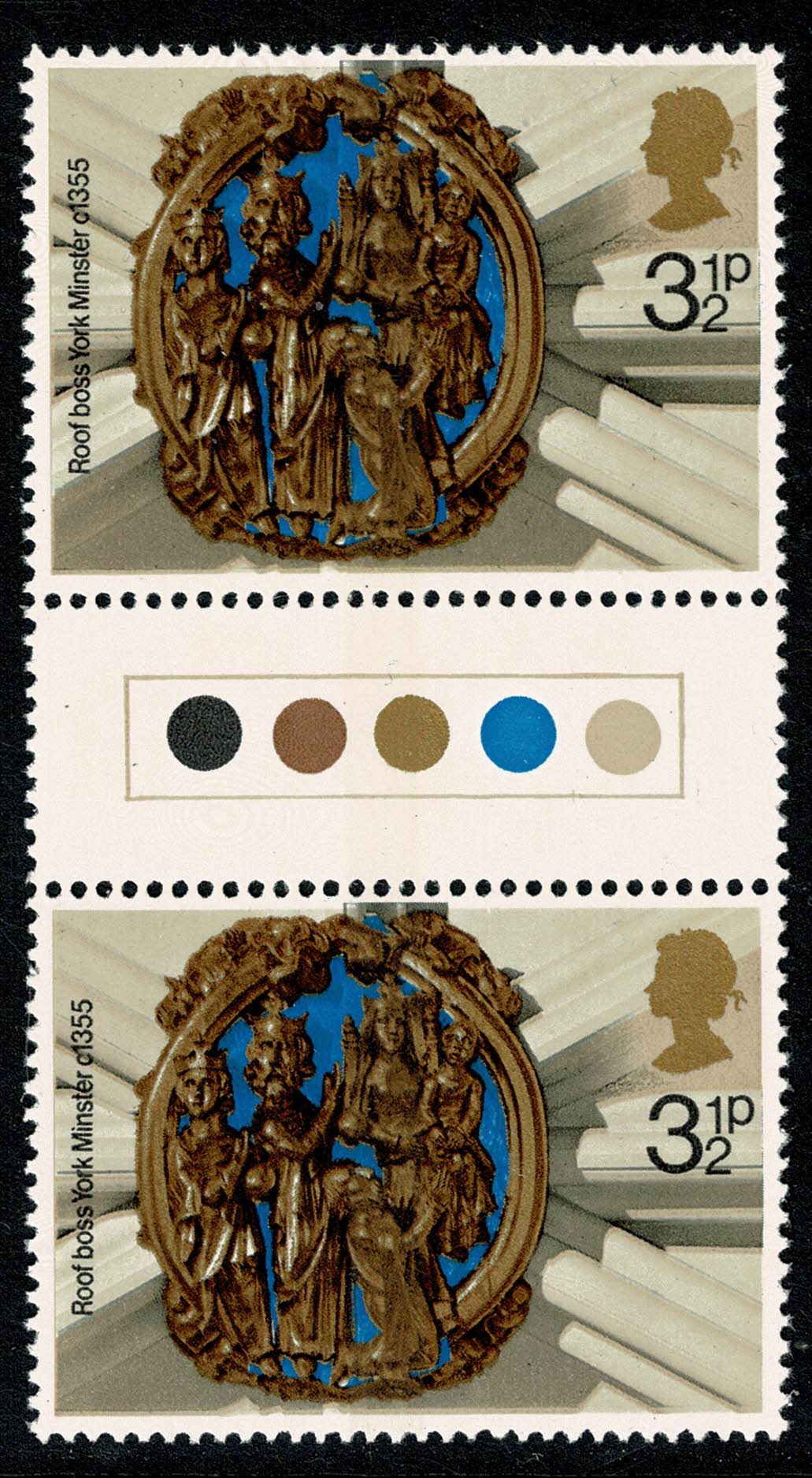 Unmounted mint, unfolded traffic light gutter pair 3½p centre band.