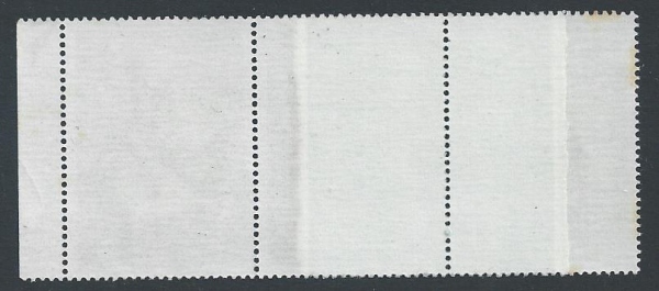Unmounted mint vertical strip of three with printers repair resulting in parts of two stamps being printed on DOUBLE THICKNESS paper.