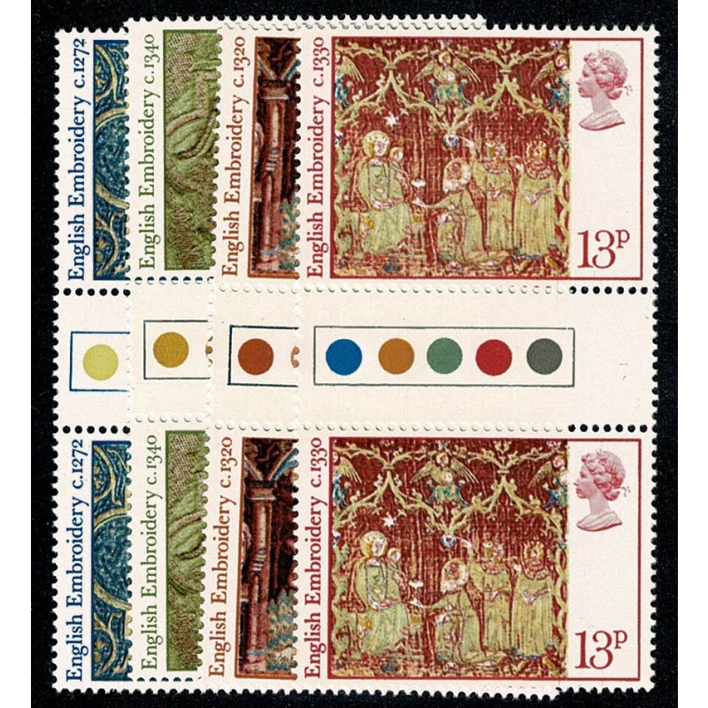 Unmounted mint unfolded. 1976 Christmas. Traffic Light Gutter Pair Set of 4 values.