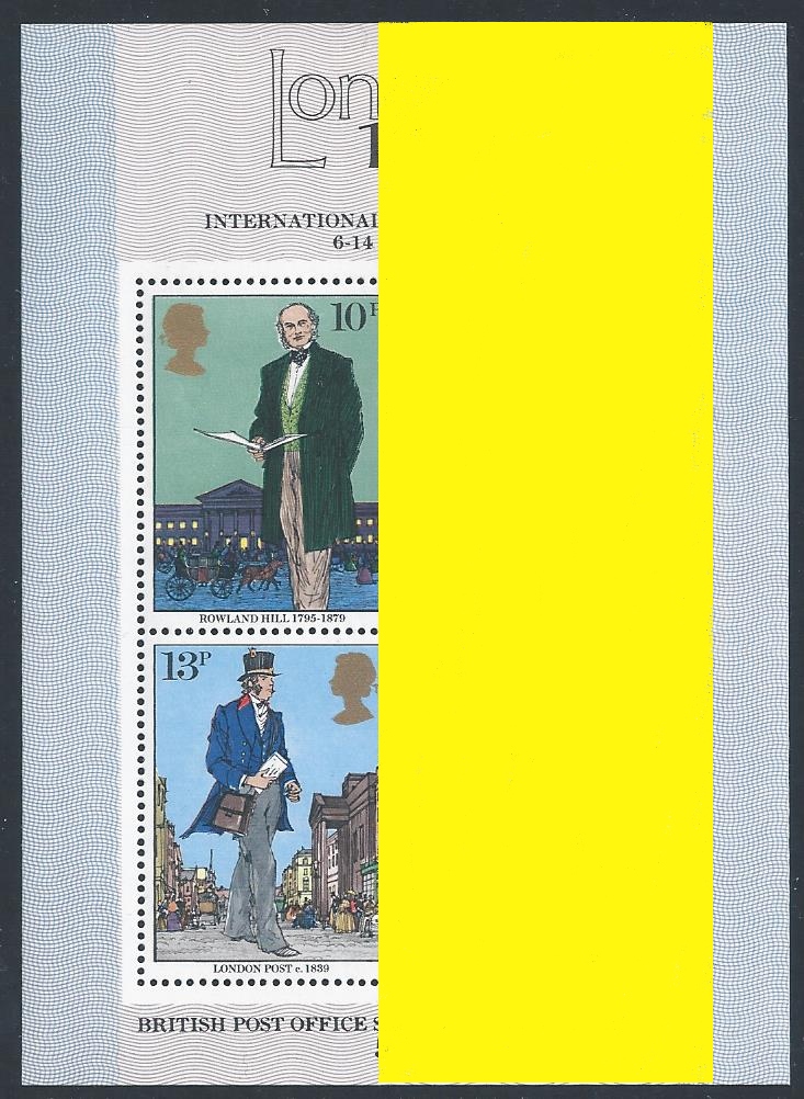 1979 Rowland Hill miniature sheet. PARTIAL MISSING PHOSPHOR