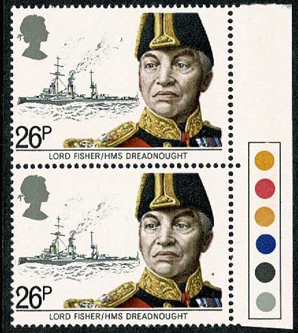 Unmounted mint positional traffic light marginal pair "retouch to face" R 8/10 (upper stamp). Retouch involves almost whole of right cheek. Not fully appreciated on scanned image.