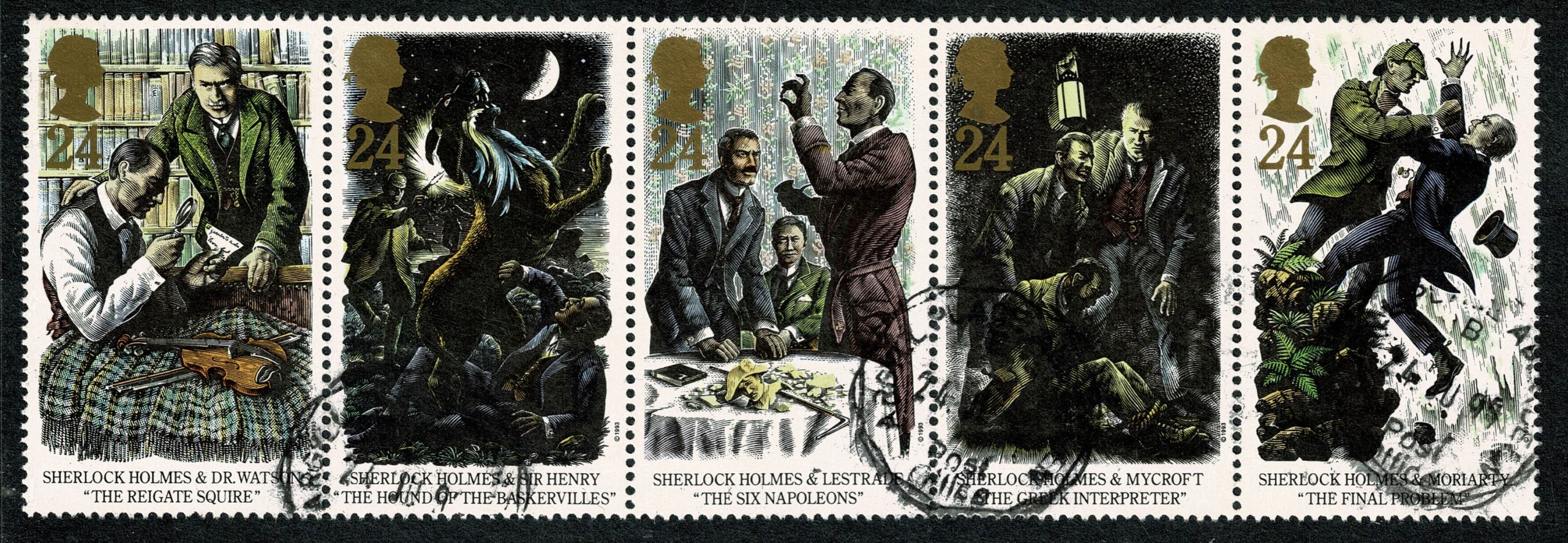 1993 Sherlock Holmes 24p Fine Used se-tenant strip of 5. SG 1784-1788