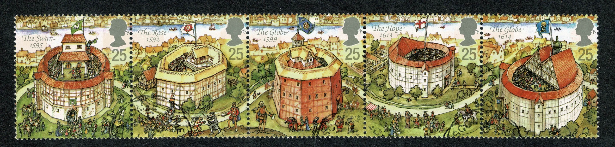 Fine used se-tenant strip of 5 1995 Globe Theatre. As illustrated.