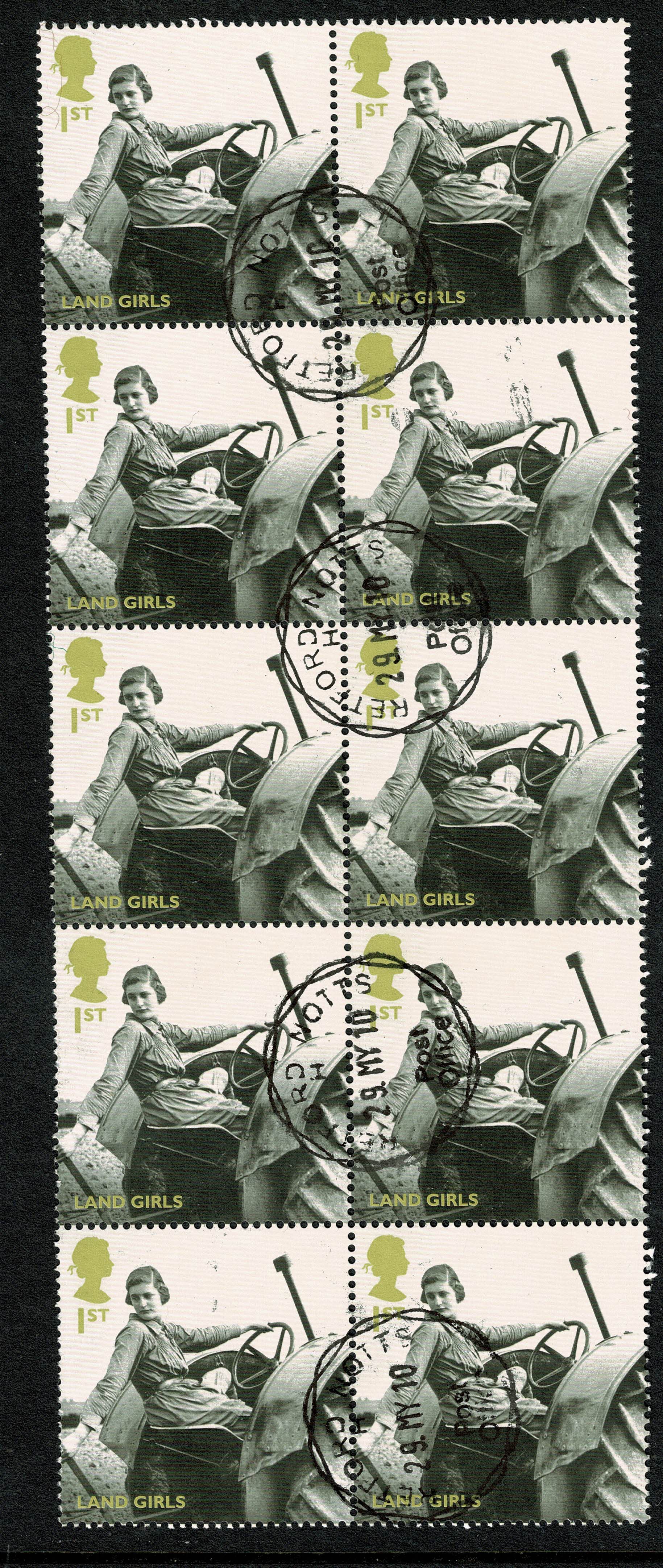 Fine used block of ten 2010 Britain Alone. 1st Class "Land Girl". As illustrated.