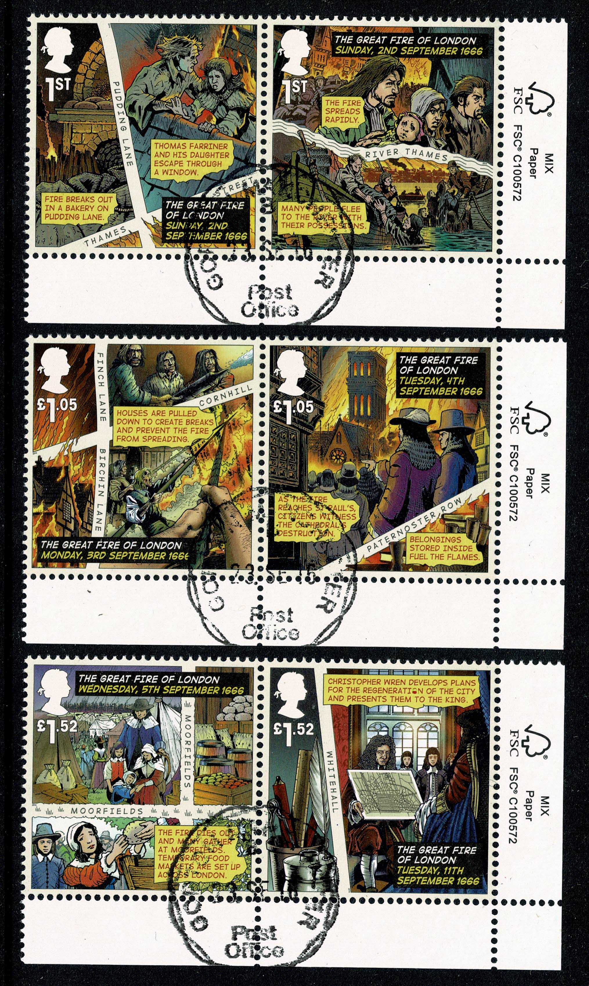2016 The Great Fire of London Fine used set of 6 values.