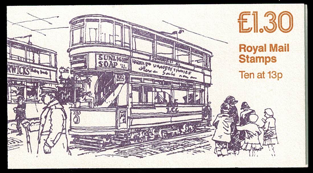 Fine full perf Booklet. £1.30 Trams No.4 "London". Left margin plain pane. DP68. SG FL6a