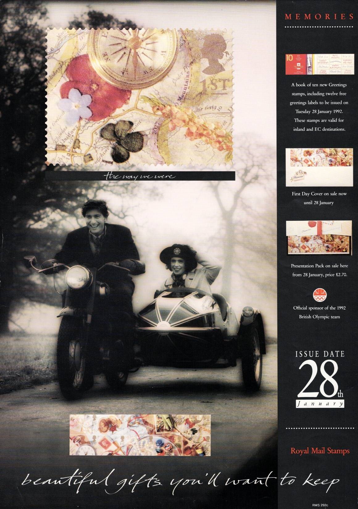 Royal Mail A3 Poster for 1992 "Memories" Greeting Stamp issue & related products.