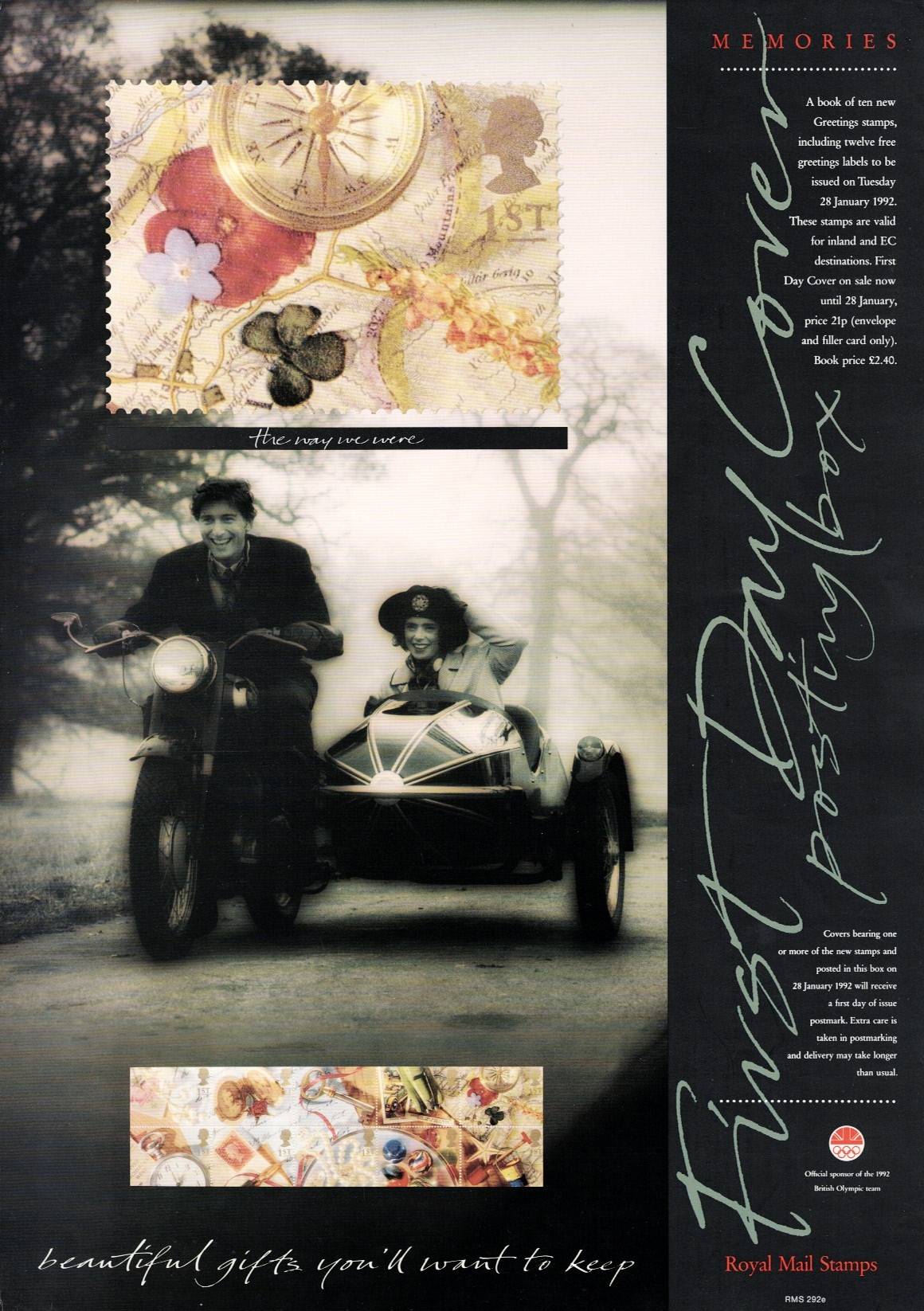 Royal Mail A3 Poster for 1992 "Memories" Greeting Stamp issue.
