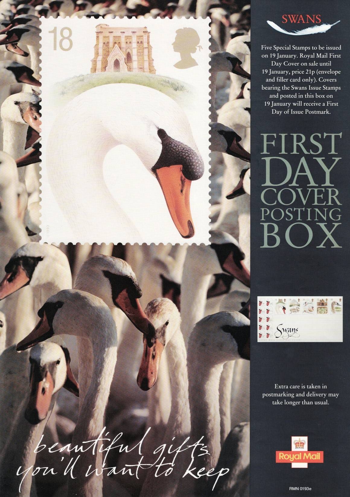 Royal Mail A3 Poster for 1993 Swans Stamp issue & related products.
