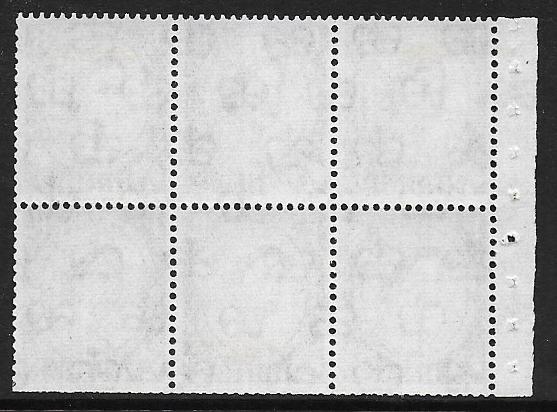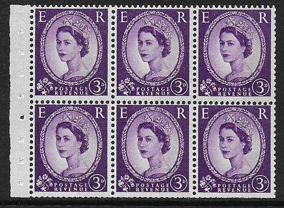 SB98Ab. 3d crowns wmk upright. Pane of six. 8mm Broad Band.